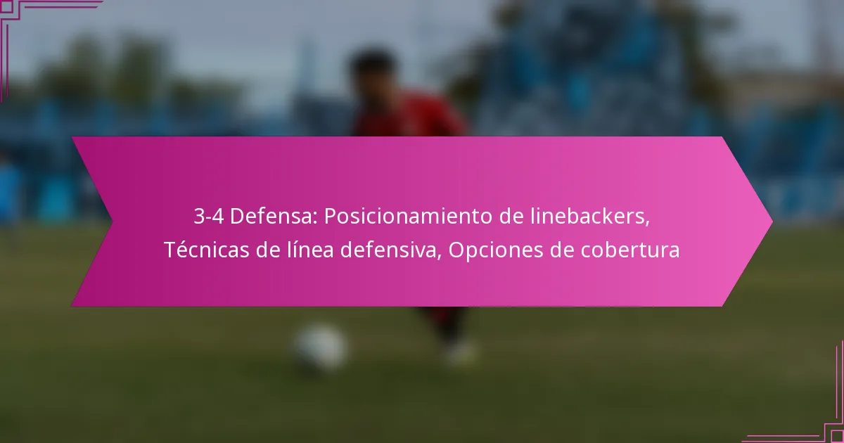 La defensa 3-4 es una alineación estratégica en el fútbol americano que cuenta con tres linieros defensivos y cuatro linebackers, proporcionando una mayor flexibilidad tanto para el ataque como para la cobertura. Esta configuración permite que los linebackers se posicionen de manera efectiva para detener la carrera y defender el pase, mientras que la línea defensiva emplea técnicas centradas en el control de espacios y la adaptabilidad para contrarrestar diversas formaciones ofensivas.