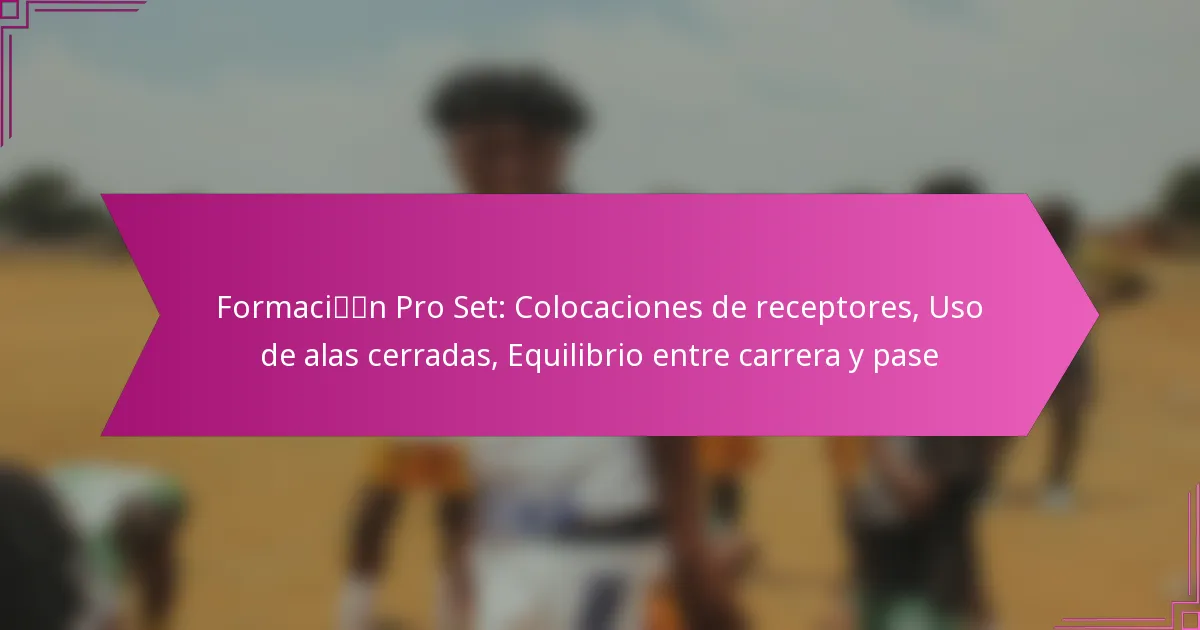 En la formación Pro Set, los receptores están posicionados estratégicamente para optimizar el espaciado y crear emparejamientos favorables contra los defensores. Típicamente, esta formación presenta dos receptores abiertos, un ala cerrada y un corredor, permitiendo un ataque equilibrado entre las jugadas de carrera y pase.