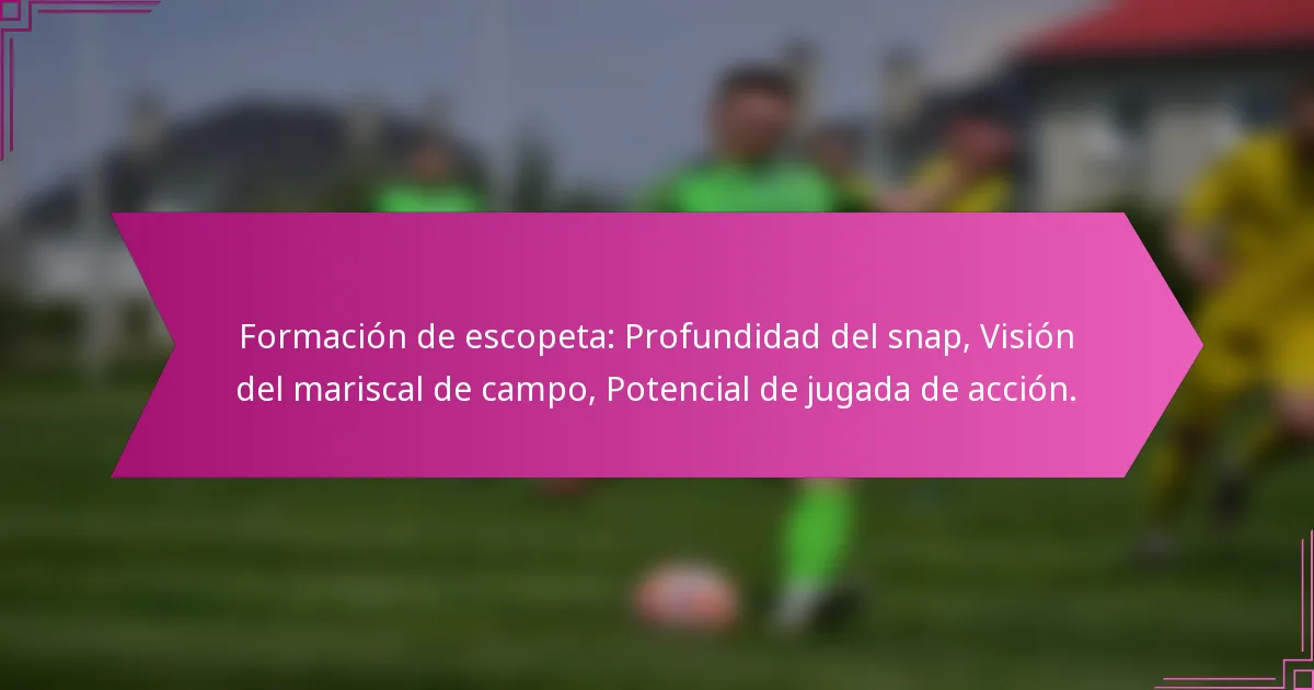 La profundidad del snap se refiere a la distancia entre el mariscal de campo y el centro en el momento en que se realiza el snap en una formación de escopeta. Típicamente, esta profundidad varía de aproximadamente 3 a 7 yardas, dependiendo de la jugada y la preferencia del mariscal de campo. Un snap más profundo permite una vista más larga del campo, mientras que un snap más superficial puede facilitar lanzamientos más rápidos.